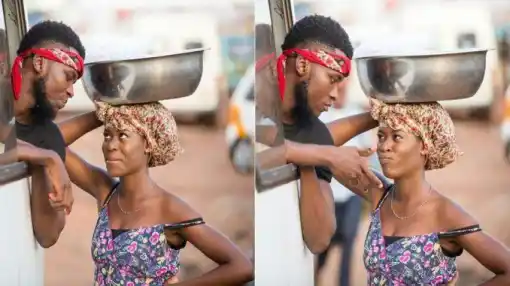 I met the prettiest pure water seller at my photoshoot, she didn't believe me when i said i didn't have a coin to pay for water, but she still gave it to me tho. All for love i guess#theHIGHlifepic.twitter.com/tyr4gnF5ZW — Kojo Eyshun (@EyShunMUSIC) January 16, 2018